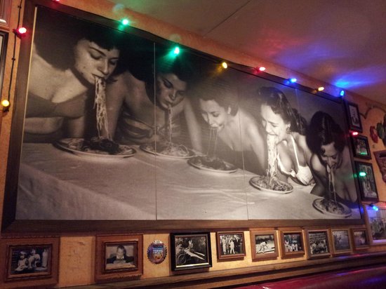 The decor at Buca di Beppo is quite eclectic with the walls covered with framed photos of people enjoying themselves, most of which are in black and white. The photos stand out, not only because they are fun, but also because the wall and other decor is very vibrant and colorful. And definitely don’t forget to check out the bathrooms!