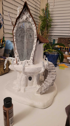 From there, I add paper clay to all the surfaces except for the windows & the stairs. It also creates the grout for all the stonework.