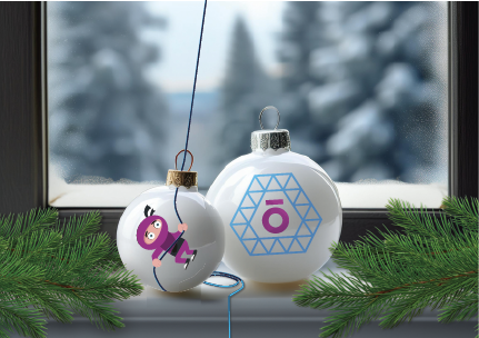 I also started designing our company Christmas cards in 2018. At the time, our company was BigCo. SmallCo. My husband took the pine branches and the ornament topper & ribbon is a graphic I found online. I drew the 3-dimensional ornament as I began to expand my knowledge of digital illustration.